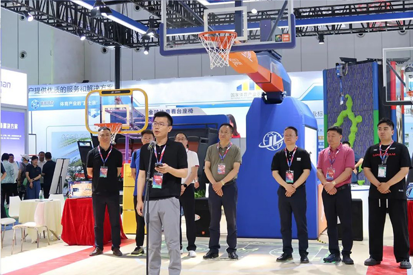 展會期間由中國木材保護工業(yè)協(xié)會運動地板專委會主辦的首屆全國運動場館設(shè)計大賽啟動儀式在金陵體育展位舉行,金陵體育總經(jīng)理李劍剛出席并致詞。