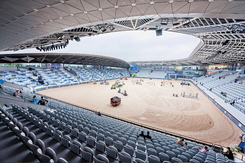 5月3日至5日,2024上海浪琴環(huán)球馬術(shù)冠軍賽在由金陵體育提供看臺(tái)座椅系統(tǒng)的上海久事國(guó)際馬術(shù)中心優(yōu)雅上演。上海久事國(guó)際馬術(shù)中心是中國(guó)首座也是世界上唯一一座位于國(guó)際一線城市市中心的符合國(guó)際頂級(jí)馬術(shù)賽事標(biāo)準(zhǔn)的永久性專業(yè)馬術(shù)運(yùn)動(dòng)場(chǎng)館。金陵體育作為該中心看臺(tái)座椅系統(tǒng)的綜合服務(wù)商,承擔(dān)了其4000余座看臺(tái)座椅和200余座豪華軟包座椅的設(shè)計(jì)、生產(chǎn)和安裝調(diào)試,以匠心打造全新的觀賽體驗(yàn)。