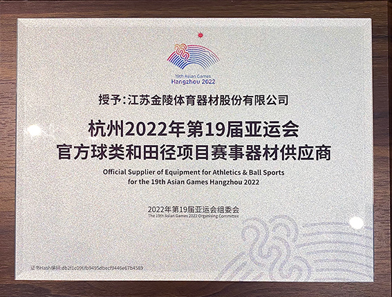 金陵體育被授予杭州2022年第19屆亞運(yùn)會(huì)官方球類和田徑項(xiàng)目賽事器材供應(yīng)商
